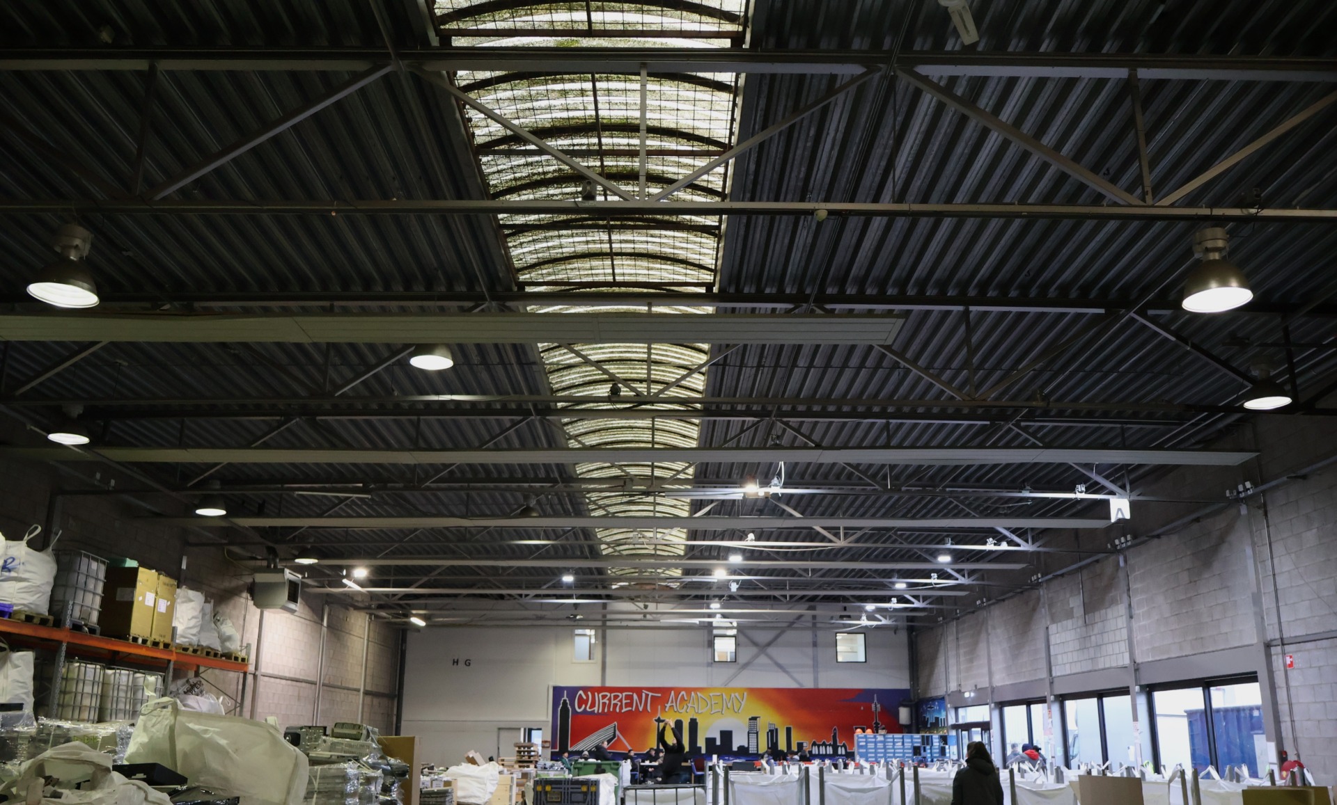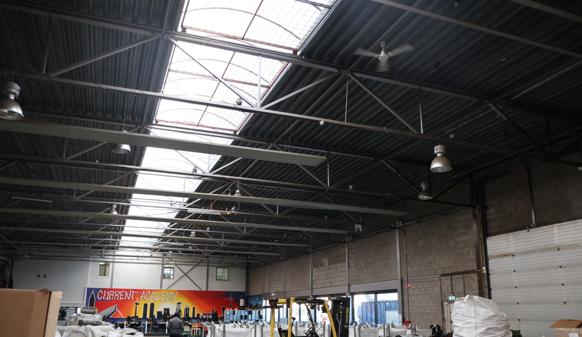 In Rotterdam Zuid heeft CurrentWerkt een grootschalige locatie met loods en horecakeuken. Op het dak lag een oude polyester lichtstraat. Maar deze liet weinig daglicht meer door. En ’s winters was het een enorme koudebrug. Dat is allesbehalve een prettige werkomgeving.